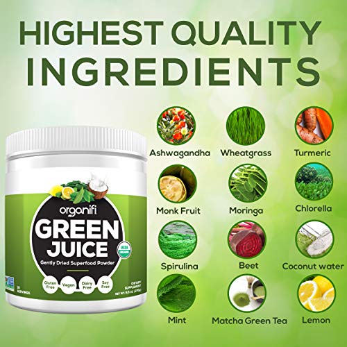 Organifi: Green Juice – Organic Superfood Supplement Powder – 30 Day Supply – USDA Certified Organic Vegan Greens- 9.5 Ounce (Pack of 1)