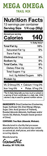 - Made from only the best, most premium whole nuts, dried fruit and seeds, our delicious trail mix does not contain sulfites, or other preservatives. Our Mega Omega Trail Mix is a unique and satisfying blend of crunchy walnuts, crispy almonds, sweet cranberries, tangy mango, and nutritious pumpkin seeds.
