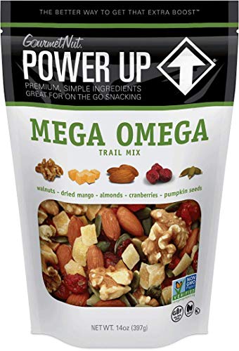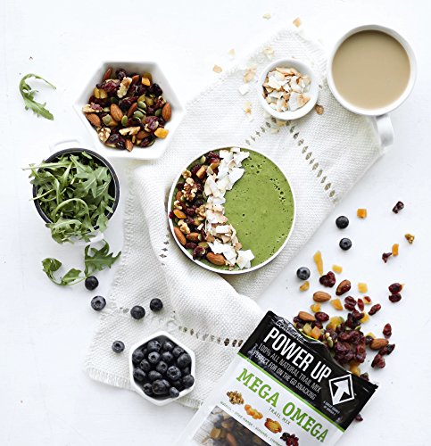 - Our Mega Omega trail mix is perfect for on-the-go snacking. You can also top our delicious trail mix on your salad, oatmeal, or yogurt. Make POWER UP a part of your next adventure!